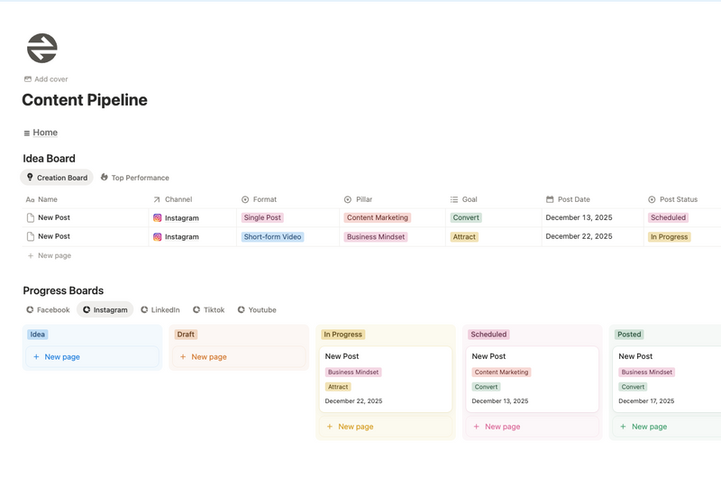 • content calendar + repurposing pipeline