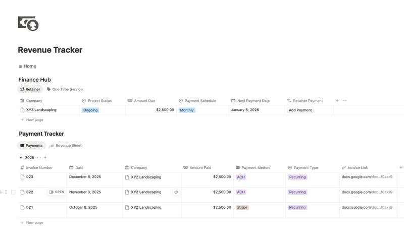 Manage clients, delivery, revenue, and planning - all inside one streamlined Notion dashboard.